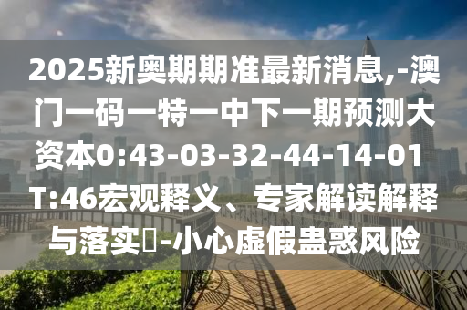 2025新奧期期準(zhǔn)最新消息,-澳門(mén)一碼一特一中下一期預(yù)測(cè)大資本0:43-03-32-44-14-01 T:46宏觀釋義、專(zhuān)家解讀解釋與落實(shí)?-小心虛假蠱惑風(fēng)險(xiǎn)